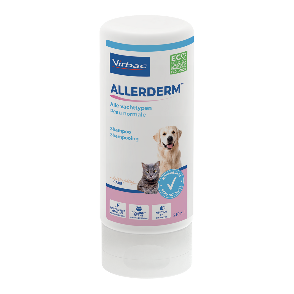 De Allerderm Alle Vachttypen Shampoo is een ph neutrale shampoo voor dagelijks gebruik, die ingezet kan worden voor het reinigen van de vacht bij honden en katten. De shampoo heeft een aangename kokosgeur die zorgt dat onaangename geurtjes van de vacht verdwijnen.