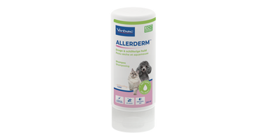 Allerderm Droge & Schilferige Huid Shampoo (voorheen Sebocalm Shampoo) is een milde, hypoallergene, verzachtende en zeepvrij shampoo voor honden en katten. Deze shampoo kan als onderhoudsshampoo gebruikt worden bij dieren die last hebben van een licht schilferige huid.