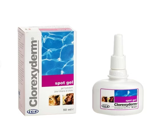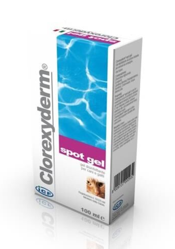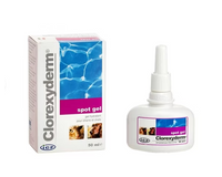 Clorexyderm Spot Gel is een desinfecterende gel met chloorhexidine en Tris-EDTA. Het is geschikt voor huidplooien, vochtige huidgebieden en gehoorgangen van honden, katten en paarden. De gel hydrateert en beschermt en heeft huidhechtende eigenschappen, voor een langdurige werking. Na het aanbrengen vormt de gel een laagje op de huid, dat het afzetten van verontreinigende deeltjes op de huid tegengaat. Dit alles zonder de huidvernieuwing te beïnvloeden. De Chlorexyderm gel prikt niet.