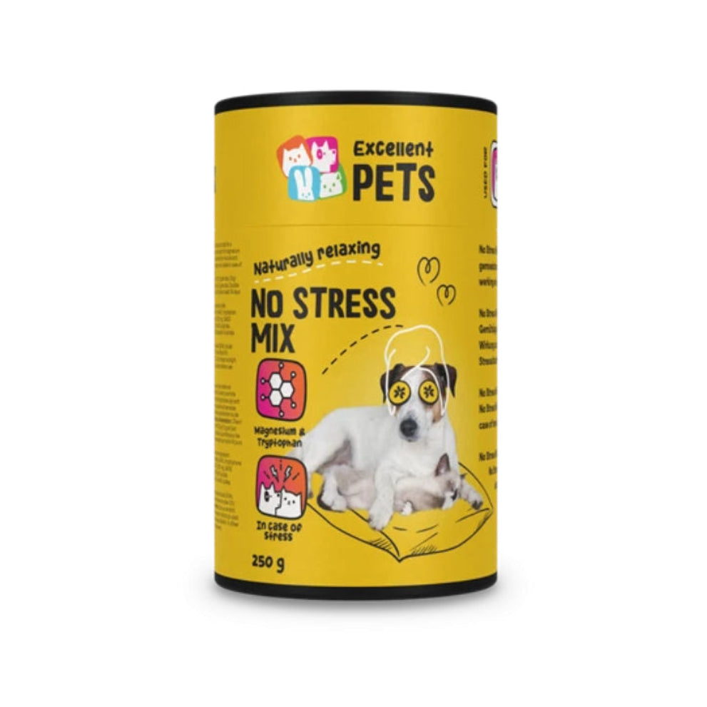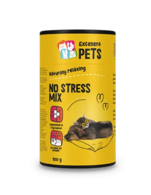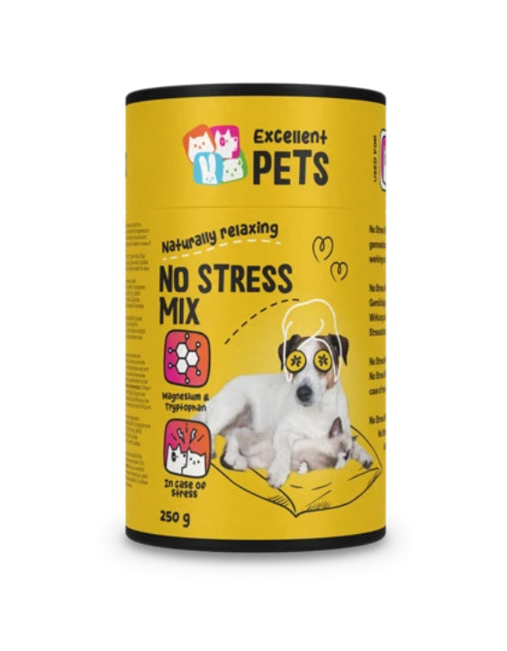 Excellent No Stress Mix is een voedingssupplement voor honden en katten op basis van L-tryptofaan dat ingezet kan worden ter ondersteuning bij stress bij dieren. Het middel is 100% natuurlijk en bevat naast L-tryptofaan ook een hoog aandeel aan magnesium met toegevoegde vitaminen en mineralen. Excellent No Stress Mix kan o.a. ingezet worden bij de volgende indicaties: