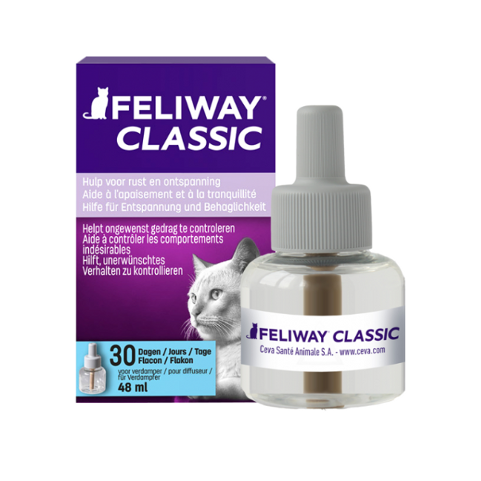 Feliway Classic is een verdamper voor in het stopcontact die een geruststellend feromoon voor katten verspreid. Hierdoor voelt de omgeving voor de kat geruststellend en vertrouwd aan. Het kan ingezet worden voor katten die te maken hebben met stress het hierdoor ongewenst gedrag zoals bijvoorbeeld sproeien vertonen.