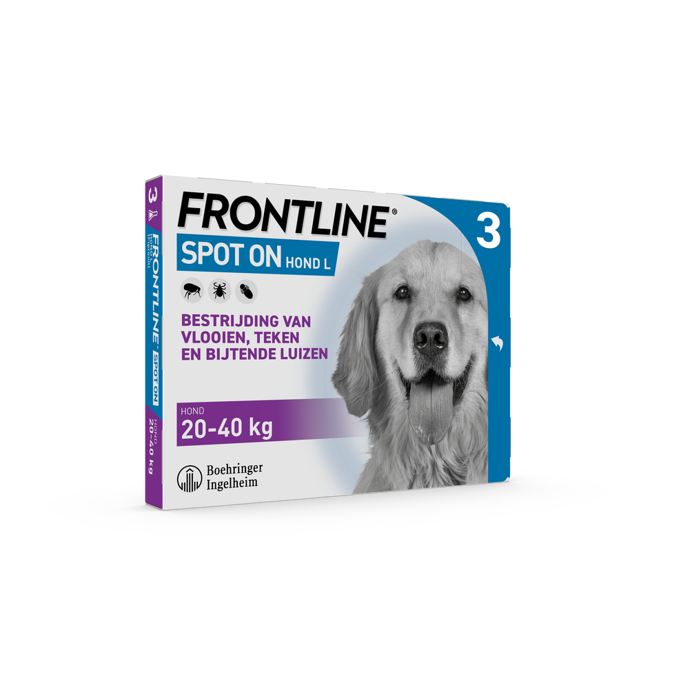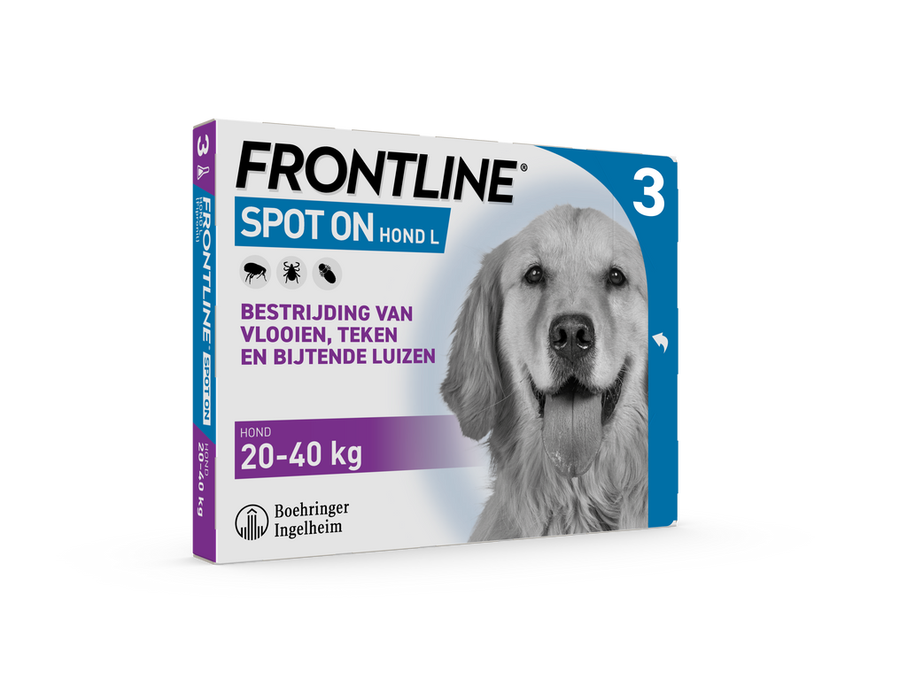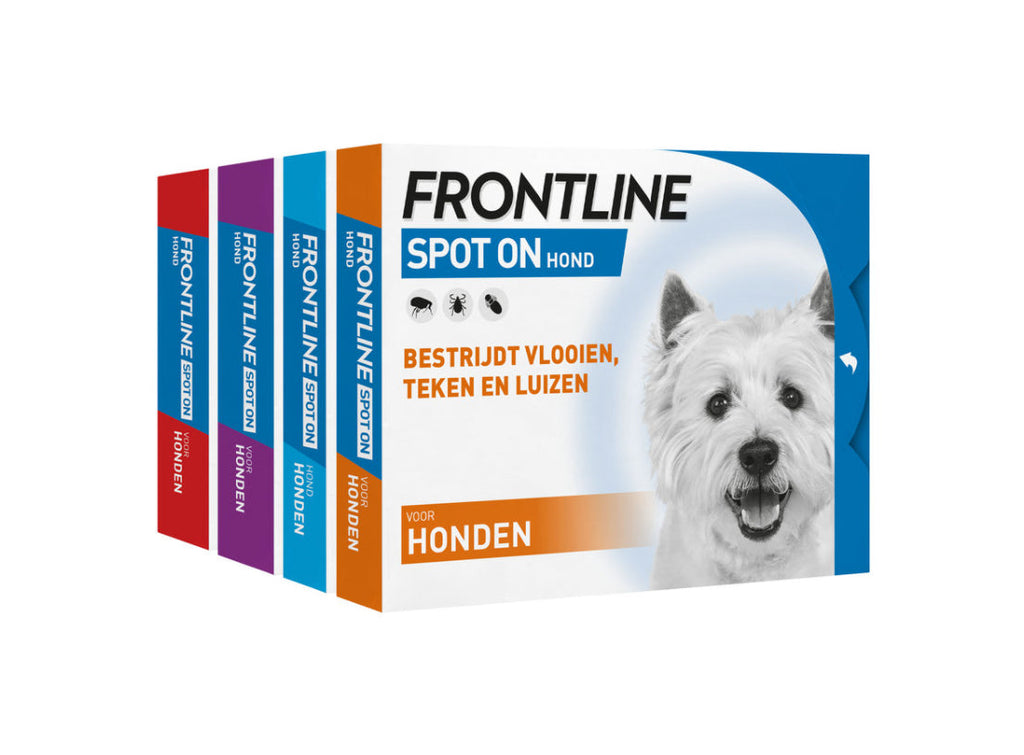 Frontline Spot-On van Boehringer Ingelheim beschermt honden binnen 24 uur na toediening tegen vlooien en binnen 48 uur tegen teken of luizen. De werkingsduur van deze pipetten is na toediening 4 weken tegen teken en 5 tot 12 weken tegen vlooien.