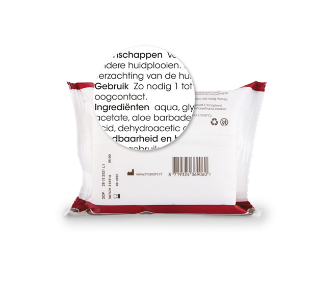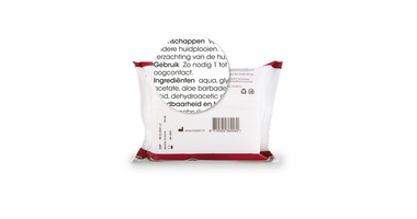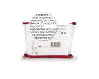 Voorzichtig met de doekjes in de plooien van de huid wrijven, naspoelen is niet nodig en de huid droogt zelf op.