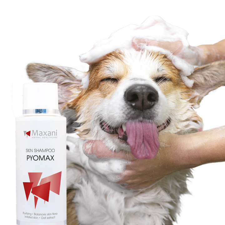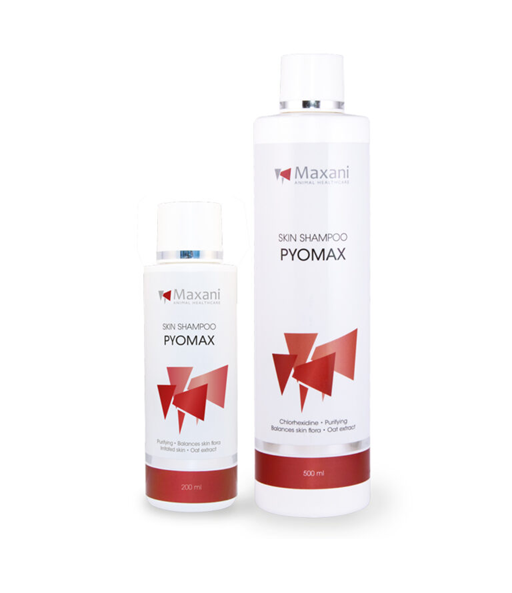 De nieuwe PyoMax lijn van Maxani is speciaal ontwikkeld om de huid van uw dier effectief te zuiveren en zo het herstel van een evenwichtige huidflora te ondersteunen, zonder de huid verder uit te drogen. Het kan o.a. ingezet worden bij honden met secundaire infecties door Staphylococcus pseudintermedius en Malassezia.