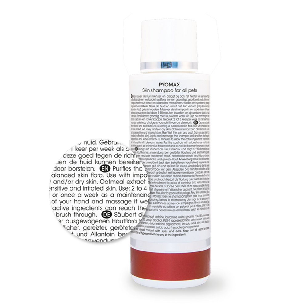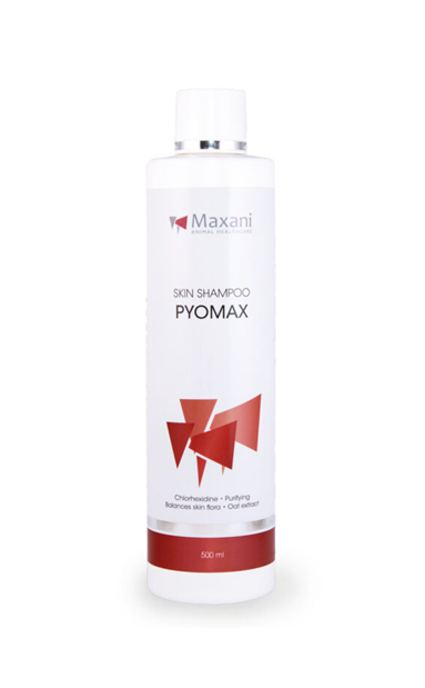Maxani PyoMax Skin Shampoo is een reinigende en zuiverende huidshampoo. Deze shampoo droogt de huid niet uit, werkt antistatisch en maakt de vacht makkelijker doorkambaar en bevat een hypoallergeen parfum.