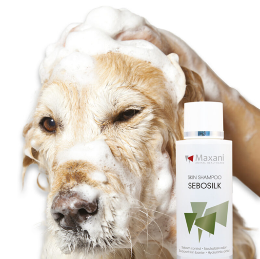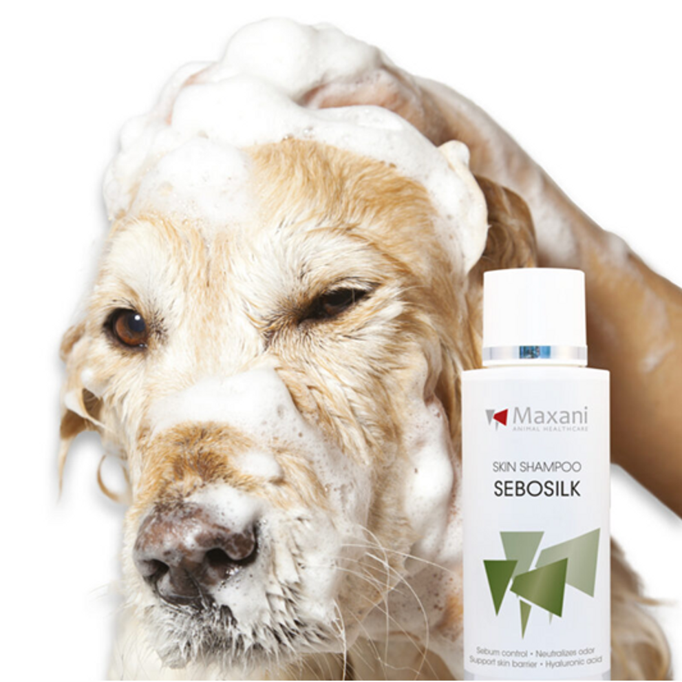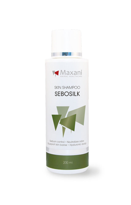 Maxani SeboSilk Skin Shampoo is speciaal ontwikkeld voor dieren met een verhoogde talgproductie en/of afwijkingen in het verhoorningsproces. Bij (vette) seborroe is een goede reiniging van belang, uiteraard in combinatie met het herstellen van de huidbarrière en de vochtbalans. Maxani SeboSilk Skin Shampoo bevordert de vorming van gezonde keratinocyten en verwijdert huidschilfers.