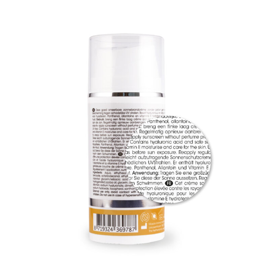 Aqua, Ethylhexyl Stearate, Glyceryl Stearate, Diethylamino Hydroxybenzoyl Hexyl Benzoate, Octyldodecanol, Ethylhexyl Triazone, Phenylbenzimidazole Sulfonic Acid, Pentylene Glycol, Capryloyl Glycerin/Sebacic Acid Copolymer, Glycerin, Cetearyl Alcohol, Ceteareth-20, Ceteareth-12, Cetyl Palmitate, Panthenol, Allantoin, Tocopherol, Helianthus Annuus Seed Oil, Sodium Hyaluronate, Sodium Hydroxide, Dimethicone, Ethylhexylglycerin, Xanthan Gum.