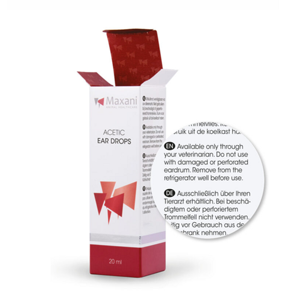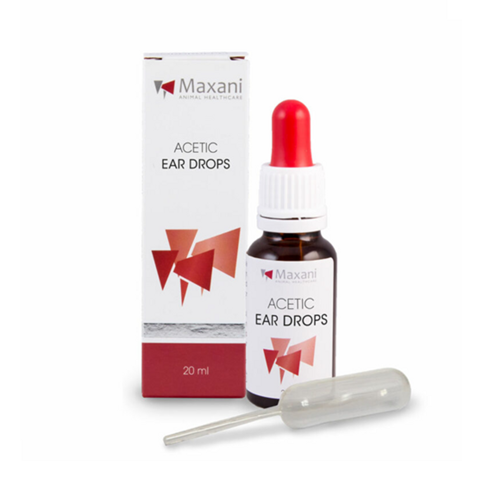 Maxani Acetic Ear Drops (zure oordruppels) is een mild reinigingsmiddel op basis van Azijnzuur voor de oren van honden. De zure oordruppels verlagen de zuurgraad en zorgen voor een ongunstig klimaat voor ongewenste micro-organisme in het oor. De druppels kunnen ingezet worden bij honden die vaker last hebben van geprikkelde oren en honden die vaak zwemmen.