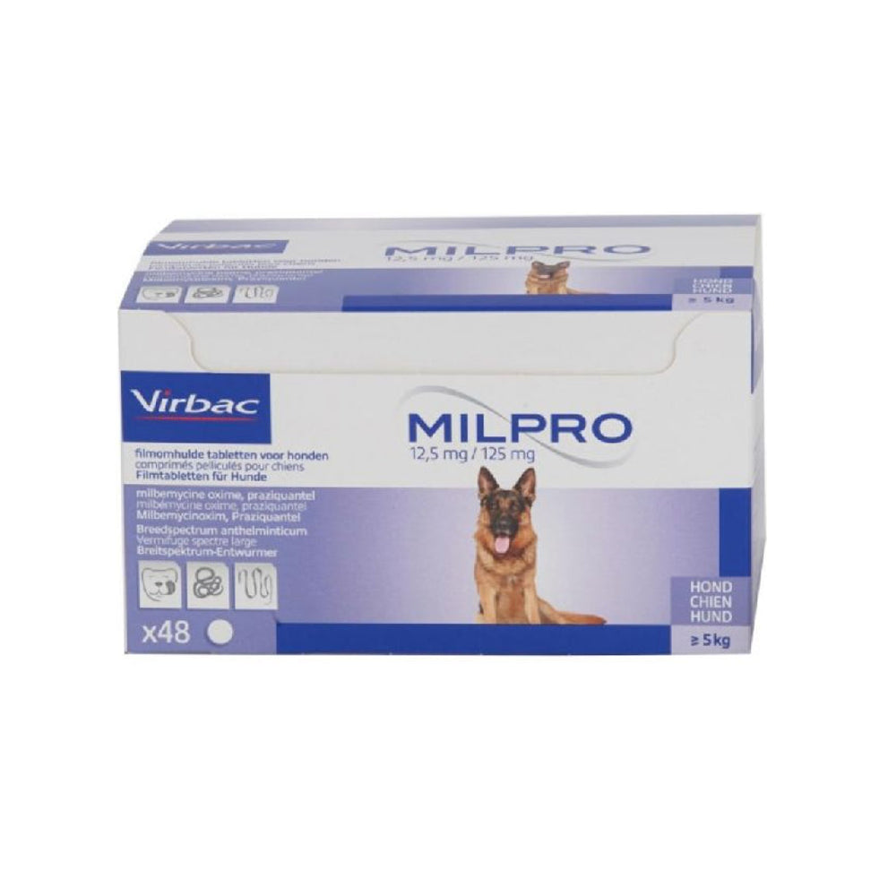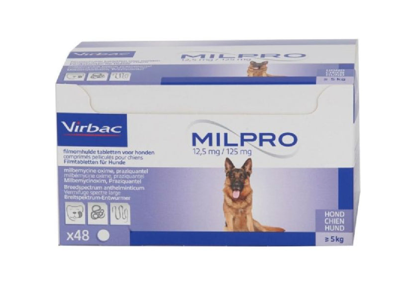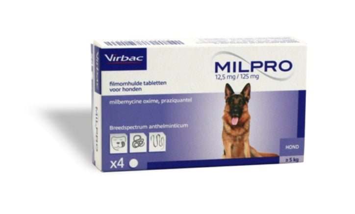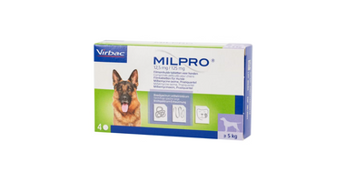 Milpro Hond > 5 kg is een breedspectrum ontwormingsmiddel (op basis van Milbemycine en Praziquantel) voor honden > 5 kg dat veilig in gebruik is en effectief is tegen de belangrijkste wormsoorten.
