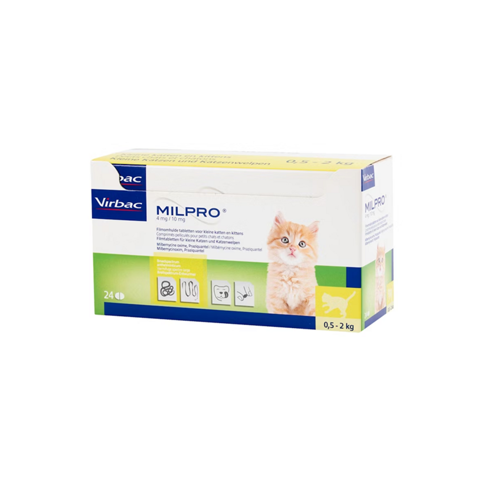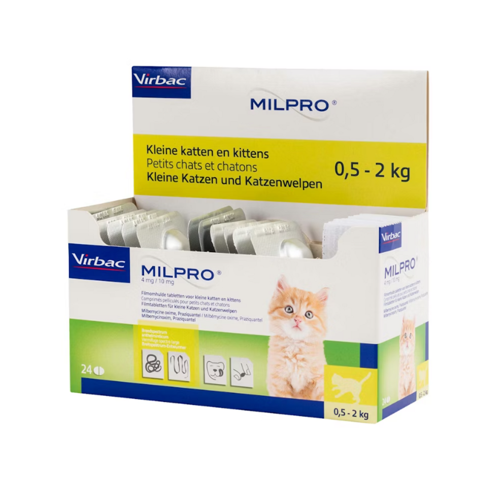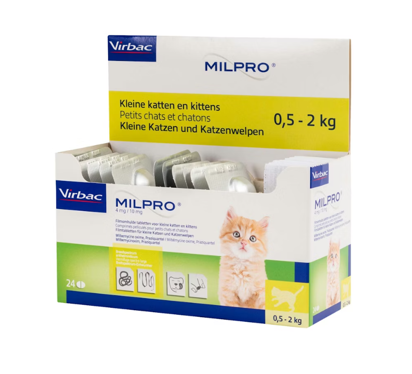 Milpro Kitten / Kleine Kat is een breedspectrum ontwormingsmiddel (op basis van Milbemycine en Praziquantel) voor katten dat veilig in gebruik is en effectief tegen de belangrijkste wormsoorten. De Milpro tabletten voor Kitten / Kleine Kat zijn deelbaar, dus makkelijk toe te dienen. Daarbij zijn de tabletten zeer smakelijk.