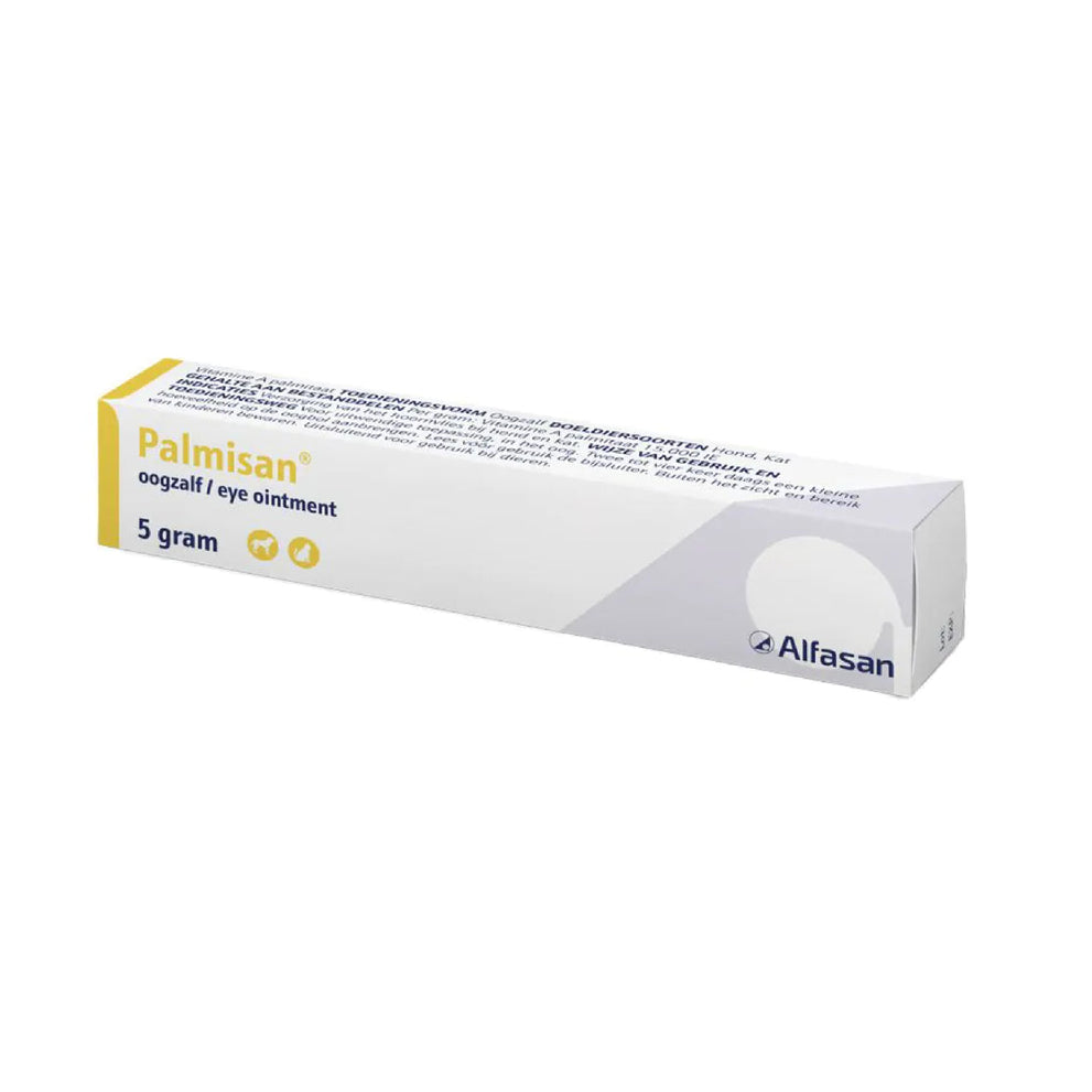 Palmisan is een oogzalf op basis van Vitamine A voor de verzorging, verzachting en bescherming van het hoornvlies bij hond en kat. Het kan o.a. ingezet worden in het geval van rode en geïmiteerde ogen bij de hond en de kat.