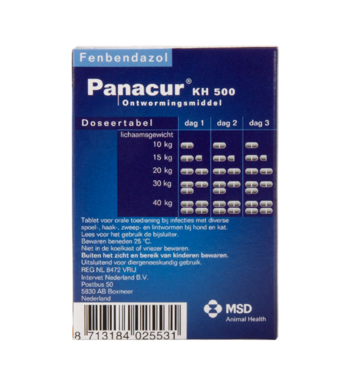 Panacur KH 500 mg is een breedspectrum ontworm middel voor honden en katten.