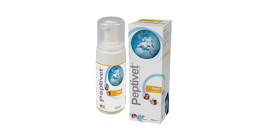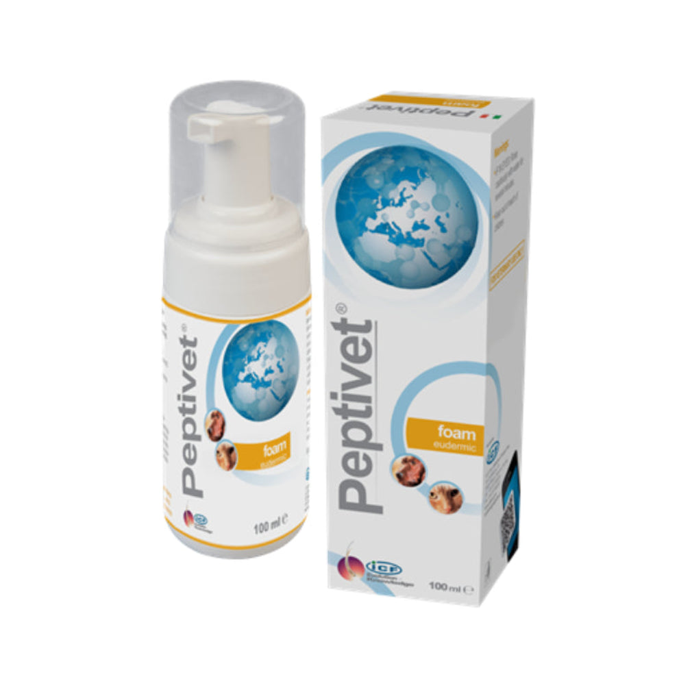 Peptivet Foam van ICF kalmeert de gevoelige huid, ondersteunt de regeneratie van de huidbarrière en normaliseert de huidflora bij honden, katten en paarden. Deze formule op waterbasis heeft een diep hydraterend effect. Het schuim bevat stoffen die de huid kalmeren en de huidbarrière ondersteunen, terwijl ze de huid en de vacht reinigen en hydrateren.
