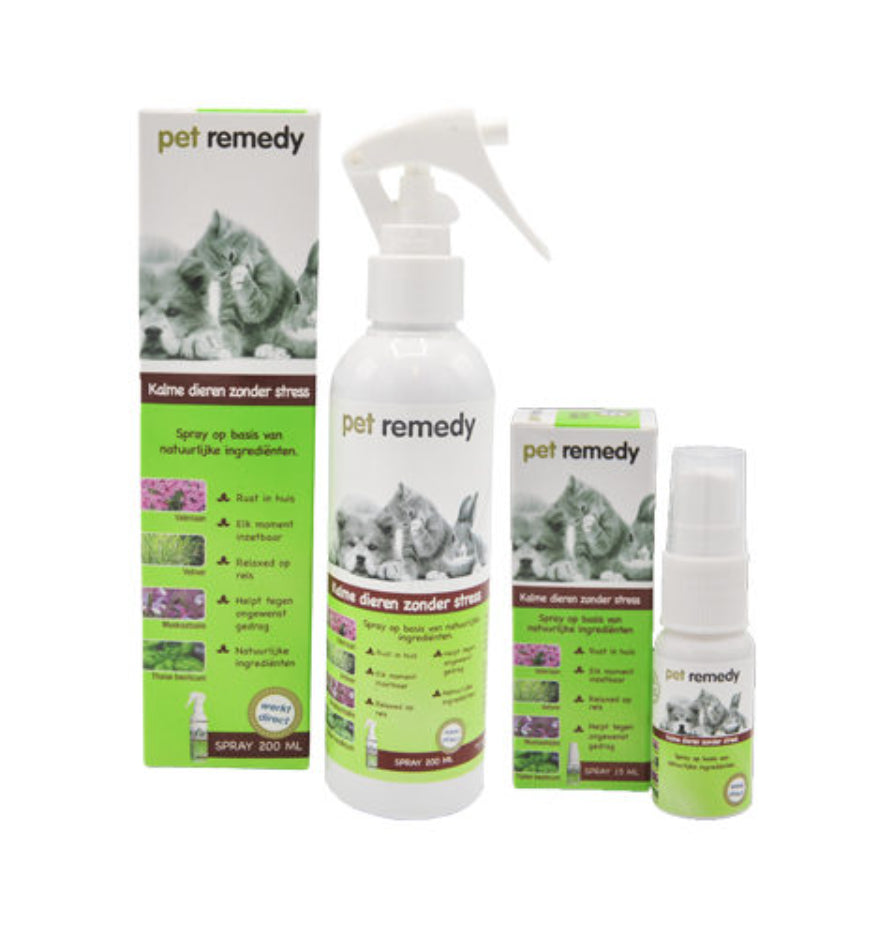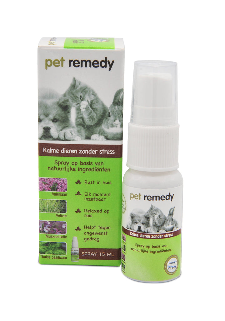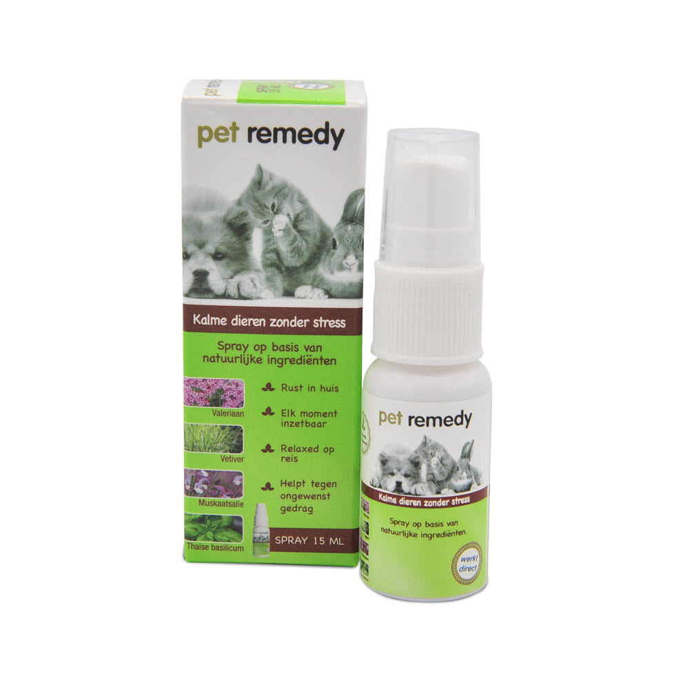 De Pet Remedy Spray is een spray op basis van Valeriaan, Vetiver etherische oliën, Basilicum en Salie die een ontspannende werking heeft op honden, katten en konijnen in stressvolle situaties. De Pet Remedy is op waterbasis en Ph neutraal waardoor deze veilig is voor gebruik op de huid en de vacht. De Pet Remedy Spray kan o.a. ingezet worden bij: