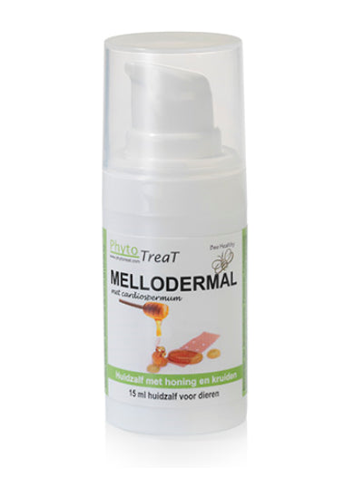 PhytoTreat Mellodermal bevat 25% Noord-Amerikaanse boekweithoning die rijk is aan antioxidanten. De zalf ondersteunt het natuurlijke herstel van de ruwe of beschadigde huid van uw hond. De antioxidantrijke honing en heilzame plantenextracten in PhytoTreat Mellodermal de huid tegen uitdrogen, brengen de geïrriteerde huid tot rust en laten de overlast snel afnemen. De Zalf bevat ook Cardiospermum-extract en is daardoor extra kalmerend voor de gevoelige huid.
