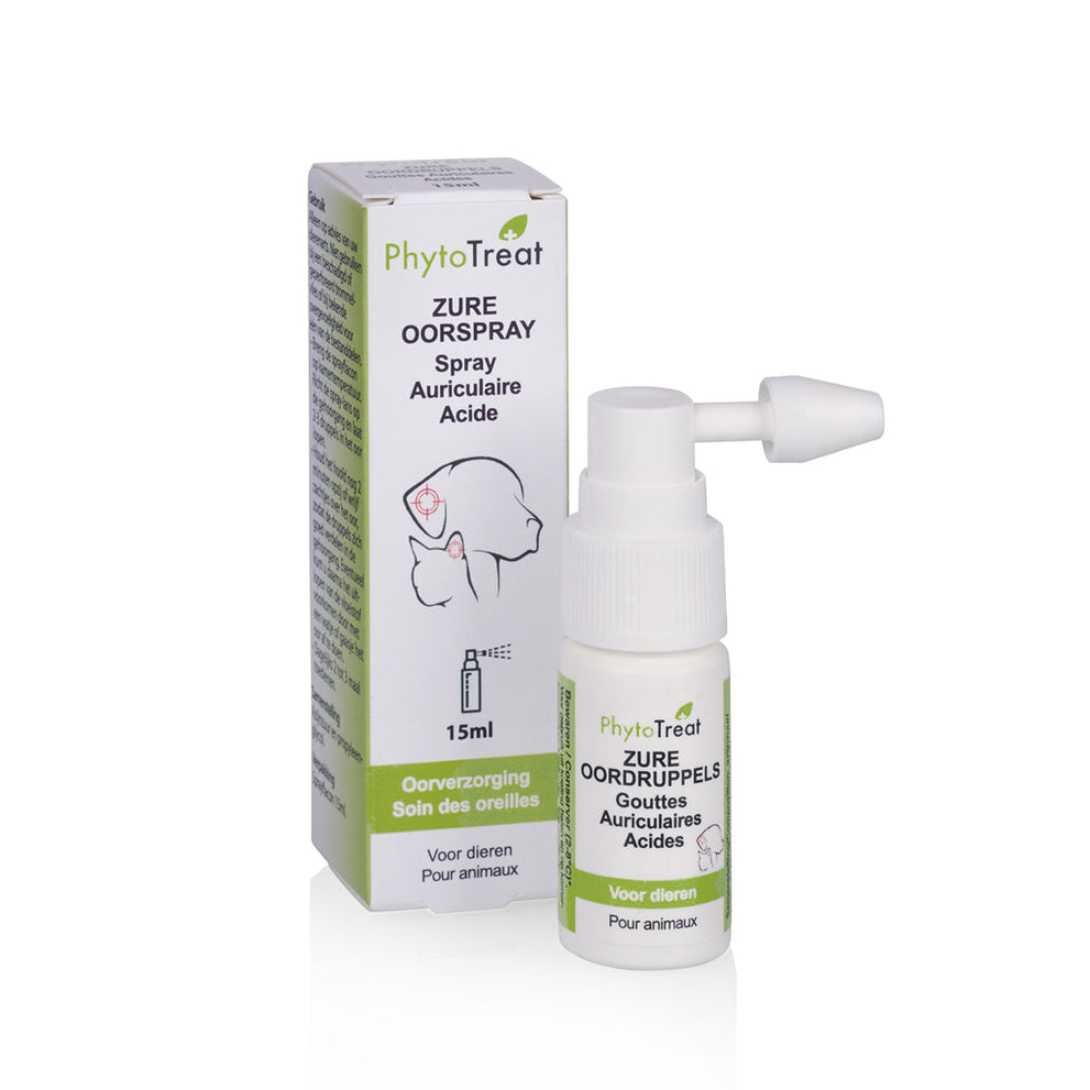 Phytotreat Zure oorspray kan ingezet worden bij de verzorging van het oor van de hond, de kat, het konijn en knaagdieren. De slimme spray is gemakkelijk te reinigen en maakt toediening hygiënisch en eenvoudig en voorkomt zo herinfectie. Phytotreat Zure oorspray reguleert de zuurgraad in de oren en is ideaal voor honden met post-zwemproblemen of als preventieve maatregel bij terugkerende "buiten" oorontstekingen (otitis externa).