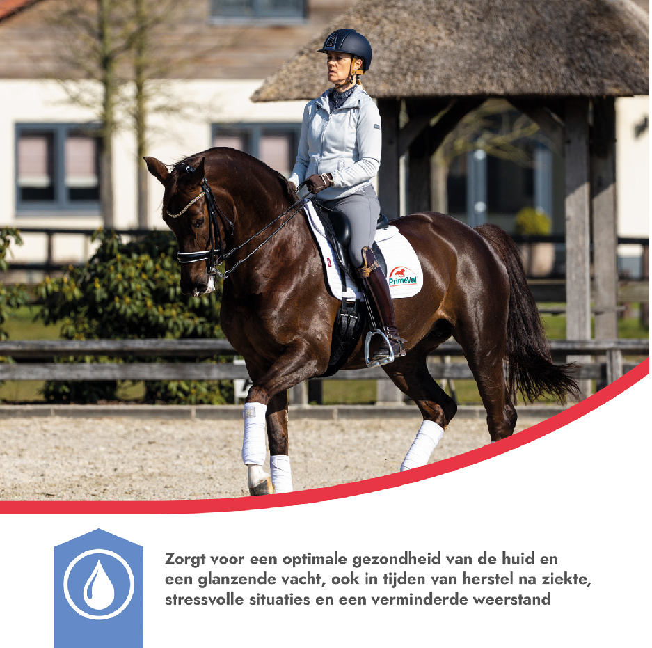 • Voor paarden met een verminderde huid- of vachtconditie (dof, niet goed door de rui komen enz.).