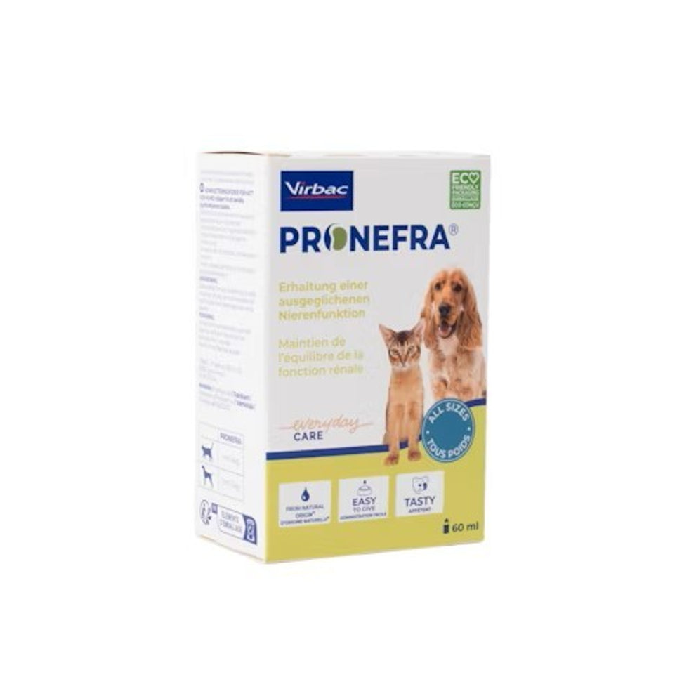 Pronefra en een smakelijke orale suspensie ter ondersteuning van de nierfunctie bij chronische nierinsufficiëntie bij de hond en kat. De vier belangrijkste bestanddelen van Pronefra zijn: