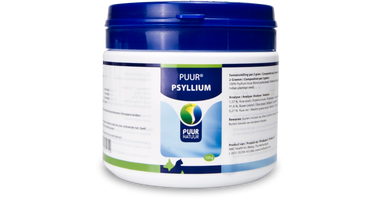 PUUR Psyllium is een aanvullend diervoeder voor honden en katten ter bevordering van de darmfunctie. Het kan ingezet worden bij obstipatie (te dikke ontlasting) en ondersteunt de afvoer van afvalstoffen.