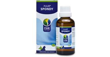 PUUR Spondy is een voedingssupplement voor honden en katten ter ondersteuning van de achterhand en rug.