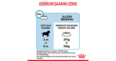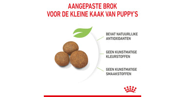 Bovendien bevat de formule uitgebalanceerde hoeveelheden mineralen, waaronder calcium en fosfor, om de ontwikkeling van sterke, groeiende botten te ondersteunen. De brokvorm is bovendien speciaal aangepast aan de grote kaken van je puppy, zodat hij de brok makkelijk kan oppakken en kauwen.