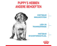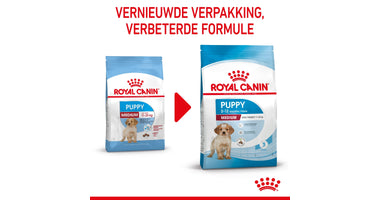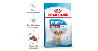 Royal Canin Medium Puppy is specifiek samengesteld om de voedingsbehoeften van puppy's van middelgrote rassen te ondersteunen. Deze formule is geschikt voor puppy's van 2 tot 12 maanden die naar schatting een volwassen gewicht van 11 tot 25 kg zullen bereiken. Deze formule bevat een complex van voedingsstoffen met vitamine C en E om een gezonde ontwikkeling van het immuunsysteem te ondersteunen.
