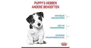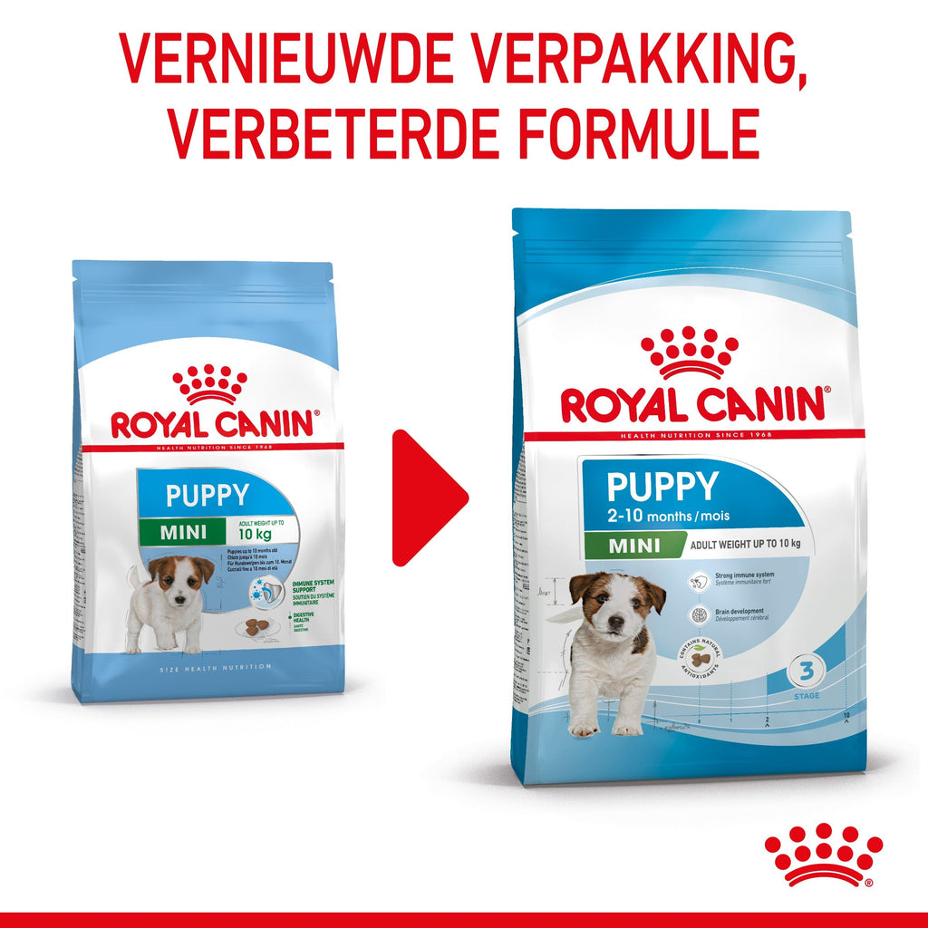 Royal Canin Mini Puppy is specifiek samengesteld om de voedingsbehoeften van puppy's van kleine rassen te ondersteunen. Deze formule is geschikt voor puppy's van 2 tot 10 maanden die naar schatting een volwassen gewicht van 4 tot 10 kg zullen bereiken.