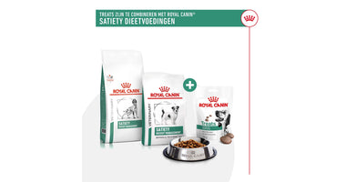Royal Canin Satiety Treats zijn te combineren met de volgende Satiety dieetvoedingen uit ons speciale Royal Canin Veterinaire assortiment, die alleen gegeven mogen worden aan je huisdier op advies van een dierenarts:
