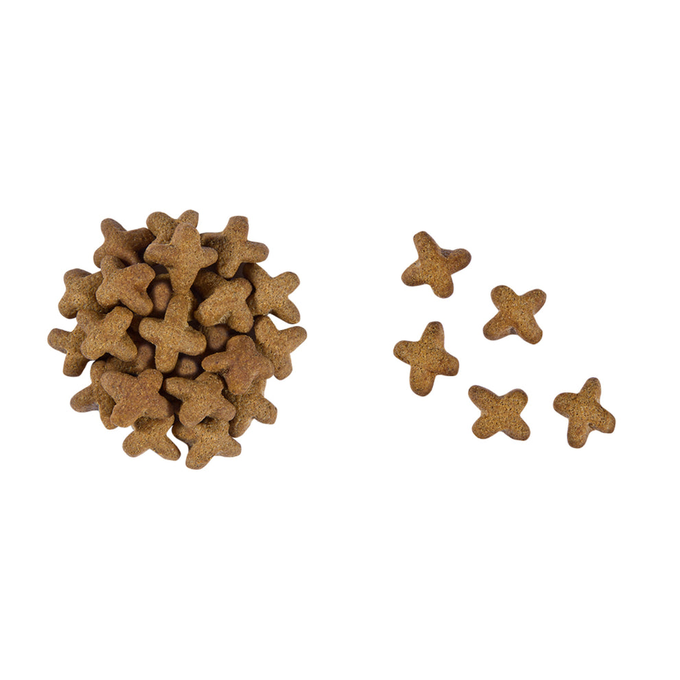 Plantaardige vezels, Gedehydreerde gevogelte-eiwitten, Tarwegluten*, Tapioca, Maïsgluten, Hydrolysaat van dierlijke eiwitten, Maïs, Tarwe, Dierlijke vetten, Bietenpulp, Visolie, Mineralen, Fructo-Oligo-Sacchariden, Sojaolie, Psylliumschillen en -zaden, Tagetes (Afrikaan) extract (bron van luteïne), Hydrolysaat van kraakbeen (bron van chondroïtine) *L.I.P.: hoogwaardige eiwitten die zeer goed verteerbaar zijn.