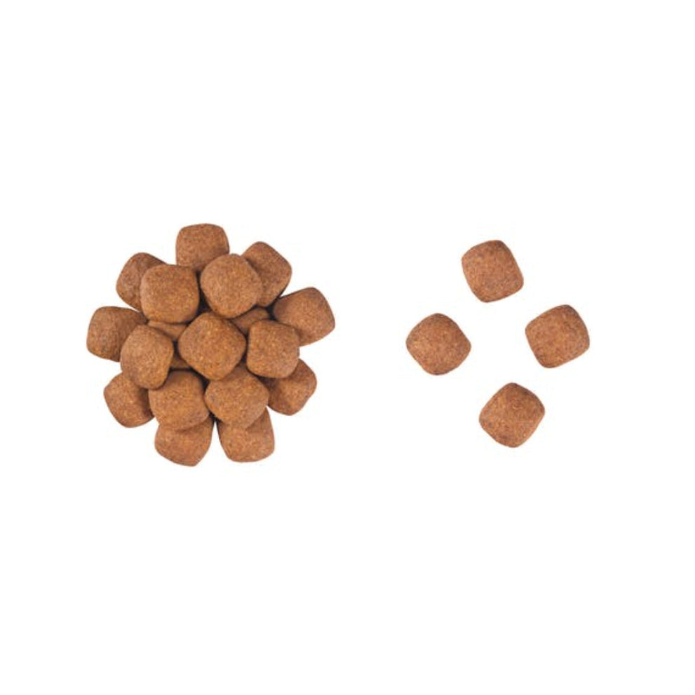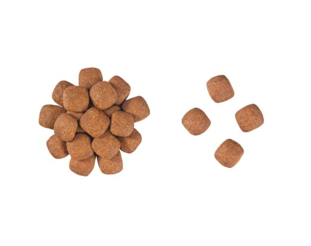 Maïs, Gedehydreerde gevogelte-eiwitten, Tarwemeel, Tarwe, Plantaardige vezels, Maïsmeel, Dierlijke vetten, Gedehydreerd varkenseiwit*, Maïsgluten, Hydrolysaat van dierlijke eiwitten, Bietenpulp, Mineralen, Visolie, Sojaolie, Gedroogde tomatenpulp (bron van lycopeen) (0.84 %), Fructo-oligosacchariden, Bernagieolie, Tagetes (Afrikaan) extract (bron van luteïne).