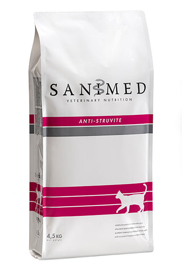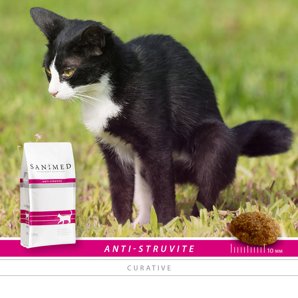 Katten die eenmaal blaasstenen hebben ontwikkeld, zijn over het algemeen gevoelig voor het terugkeren van blaasstenen. Het is daarom van belang om maatregelen te nemen om de struvietstenen op te lossen en nieuwe steenvorming te voorkomen. Sanimed Anti-Struvite helpt bij het oplossen van struvietstenen en vermindering van herhaalde struvietsteenvorming.