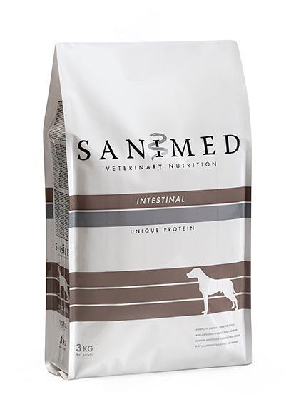 Sanimed Intestinal bevat alleen insect als intacte dierlijke eiwitbron. Dit helpt intoleranties voor bepaalde ingrediënten en voedingsstoffen te verminderen. De brokken bevatten hoog verteerbare eiwitten en een matig vetgehalte waardoor de opname van voedingsstoffen wordt gestimuleerd. Bovendien ondersteunen Vitamine E en visolie de weerstand. Bij gebruik van de voeding is het belangrijk dat uw hond geen extra’s krijgt zoals snacks, koekjes of restjes van de tafel. Hierdoor kunnen de darmproblemen terugkomen.