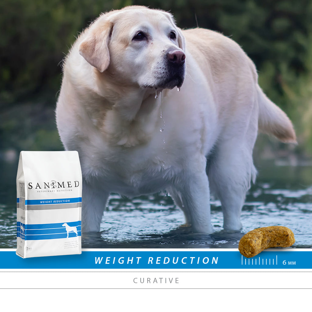 Sanimed Weight Reduction is een volledig dieetvoeder voor volwassen honden ter vermindering van overgewicht. Steeds meer honden lijden aan overgewicht. Overgewicht bij uw hond verhoogt het risico op gezondheidsproblemen. Heeft uw hond overgewicht, dan is het belangrijk om de voeding van uw hond aan te passen. Om dit te reduceren en terug te brengen naar het streefgewicht kunt u gebruik maken van de voeding van Sanimed Weight Reduction, een verantwoorde manier van vermageren.