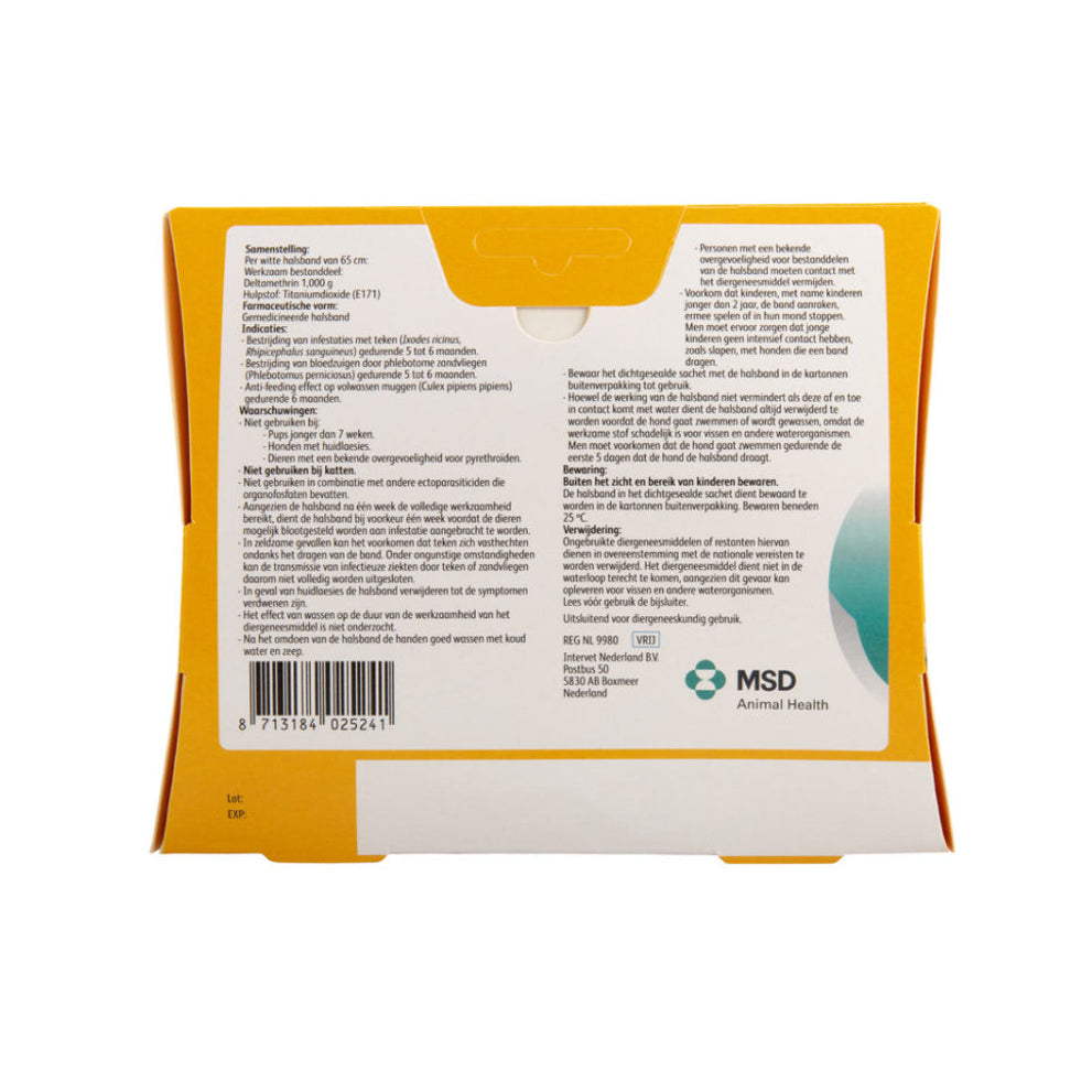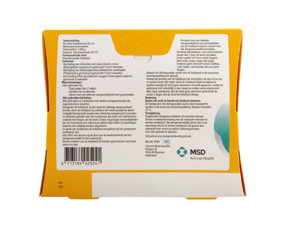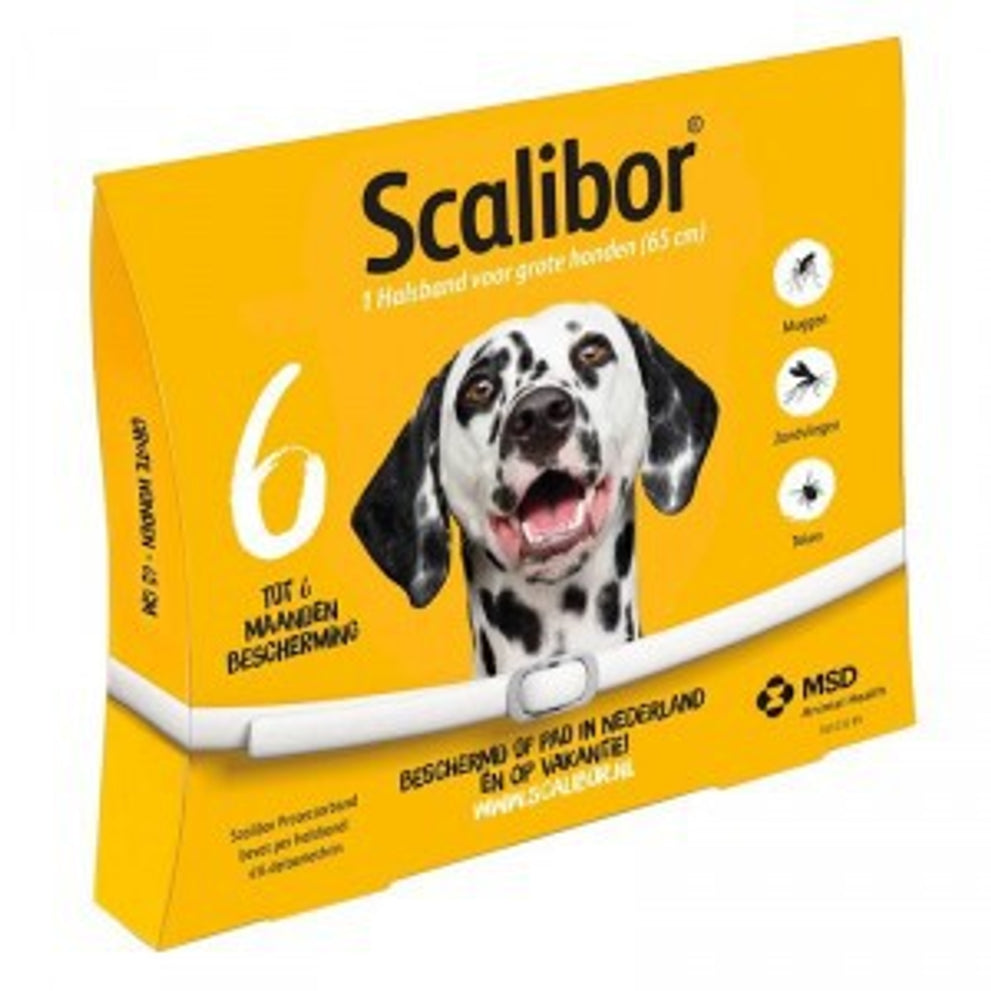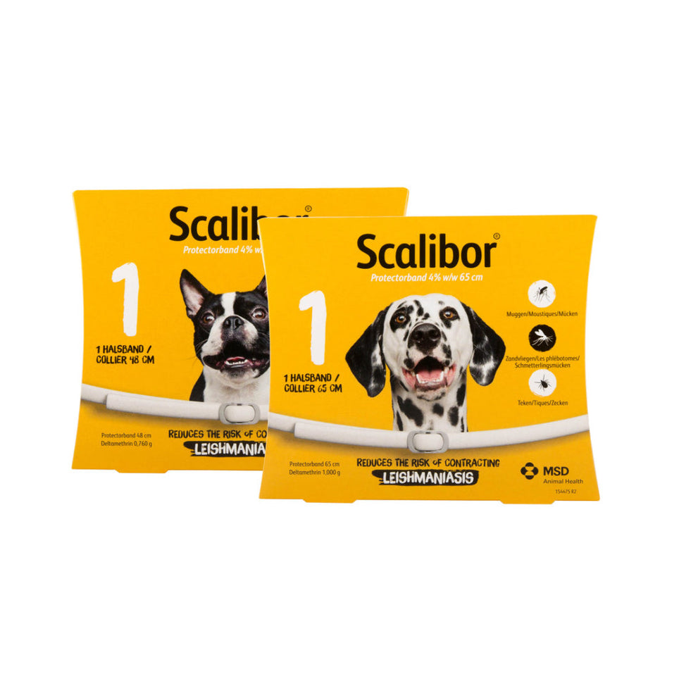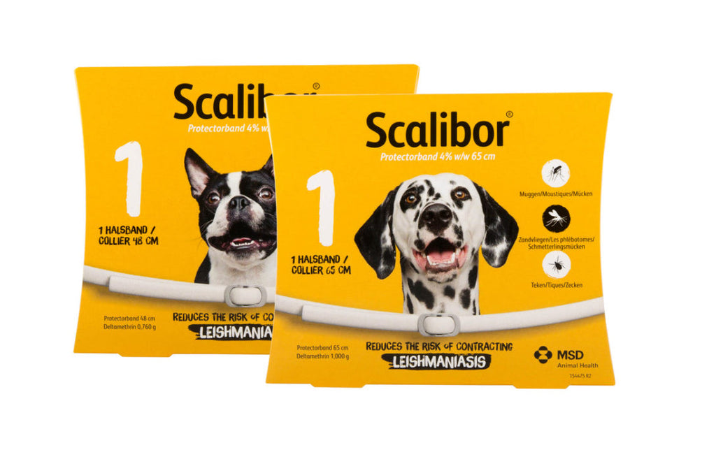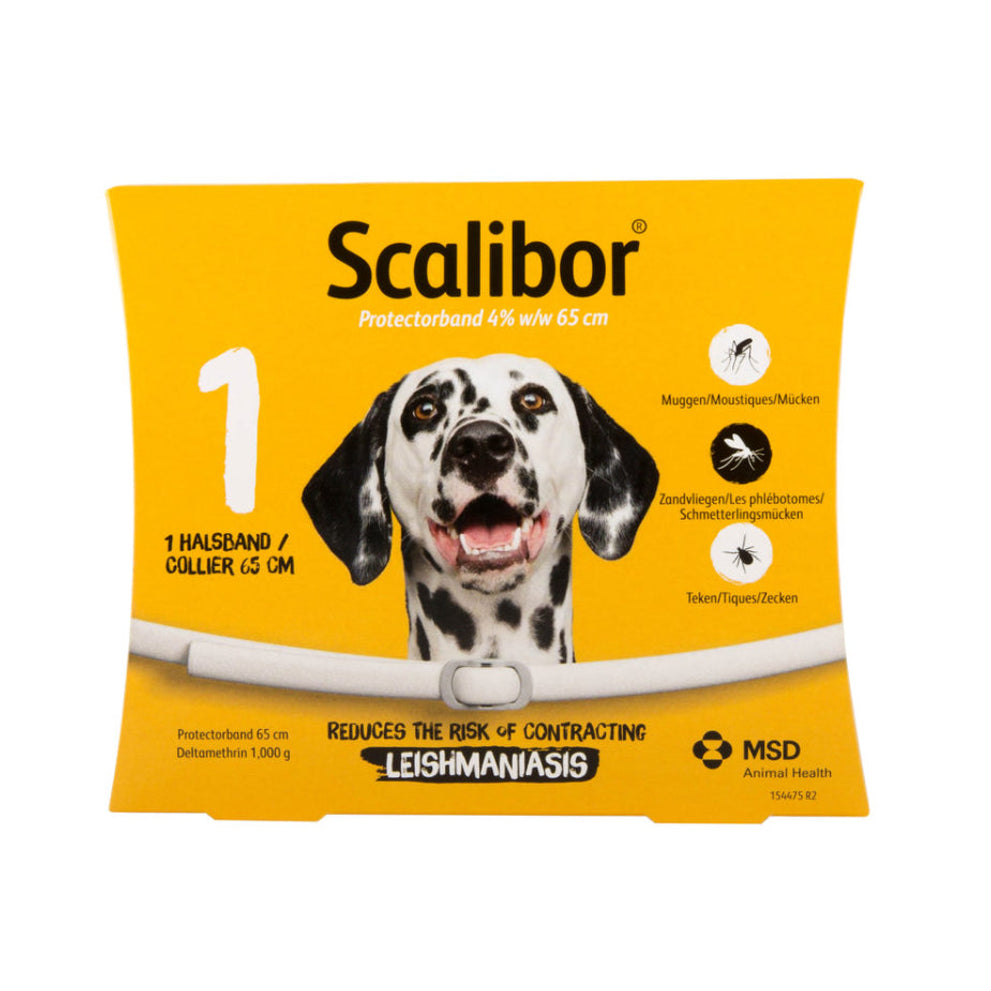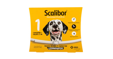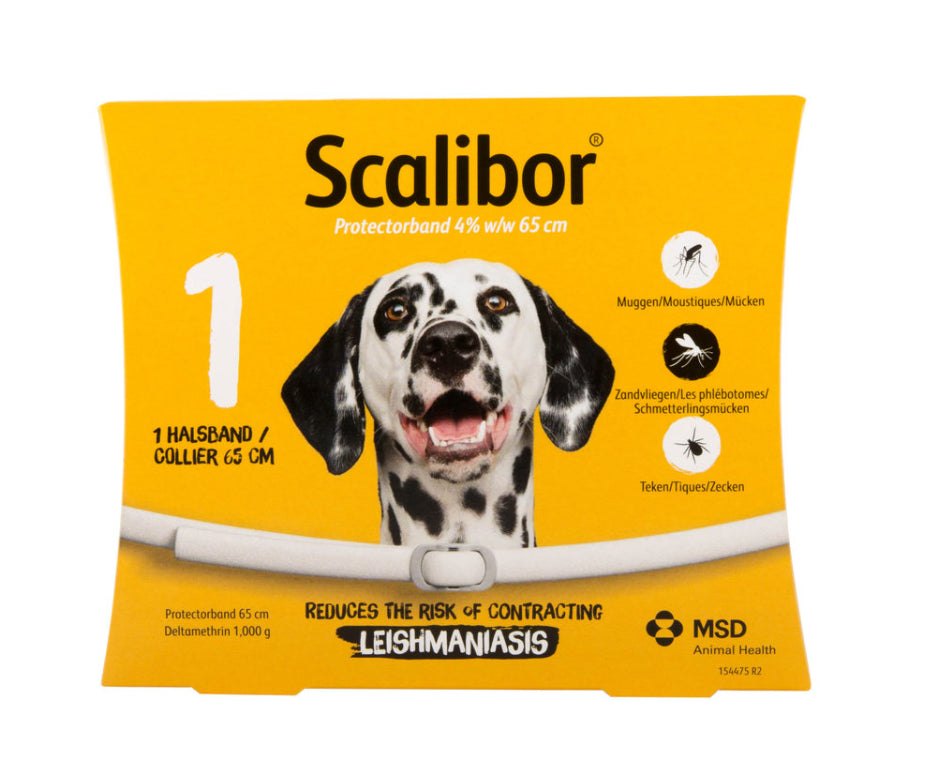 Scalibor is een halsband die ingezet kan worden ter preventie van teken-, zandvliegen- en muggenbeten bij honden.