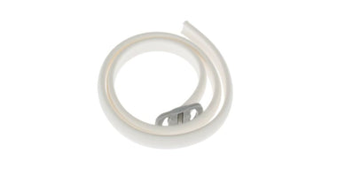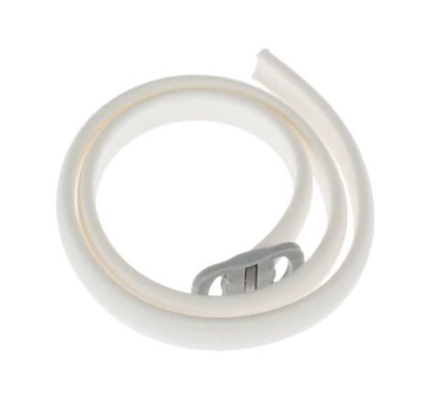 Verwijder de halsband uit het dichtgesealde sachet en breng deze losjes rond de hals van de hond aan. Houd 2 platte vingers ruimte tussen de band en de hals van de hond. Haal het einde door de gesp en knip de resterende band af op 5 cm van de gesp.