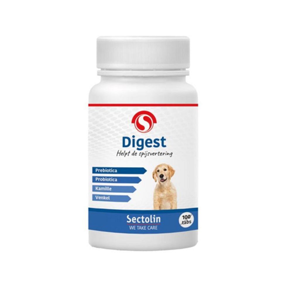 Sectolin Digest zijn smakelijke, deelbare tabletten met prebiotica, probiotica en kruiden voor een goede darmflora en ondersteuning van de spijsvertering en de maag bij honden.