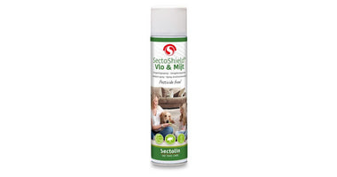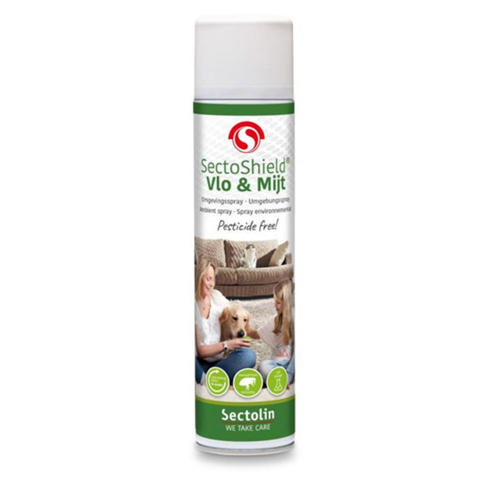 Sectolin SectoShield Vlo & Mijt Omgevingsspray is geen pesticide, maar werkt op basis van siliconen. Deze omhullen vlooien, eieren, larven en poppen en stopt zo hun ontwikkeling.