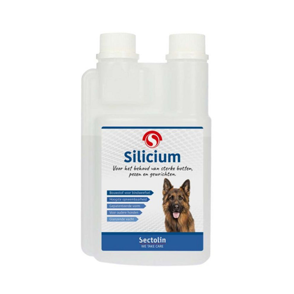 Sectolin Silicium sanvullend diervoeder voor honden. Silicium is een belangrijke bindweefsel bouwstof voor het behoud van sterke botten, pezen, gewrichten en een glanzende vacht. Vooral oudere honden en zeer actieve honden hebben baat bij extra silicium (belasting pezen en gewrichten).