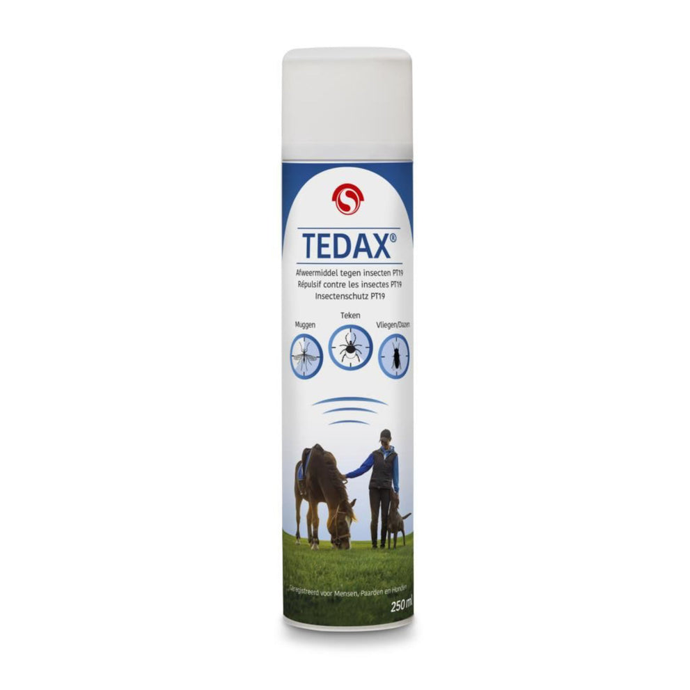 Gebruik TEDAX® bij paarden die in contact zullen komen met muggen of vliegen (inclusief stalvliegen), bijvoorbeeld voor een buitenrit, een wedstrijd of beweiding. Breng voor een paard van 450 kg per keer 200 g TEDAX® op door dit gedurende ten minste 2 minuten gelijkmatig op het lichaamsoppervlak te spuiten. TEDAX® beschermt tegen vliegen (inclusief stalvliegen) en muggen 24 uur (op basis van 90% bescherming). De bescherming start onmiddellijk na het aanbrengen.