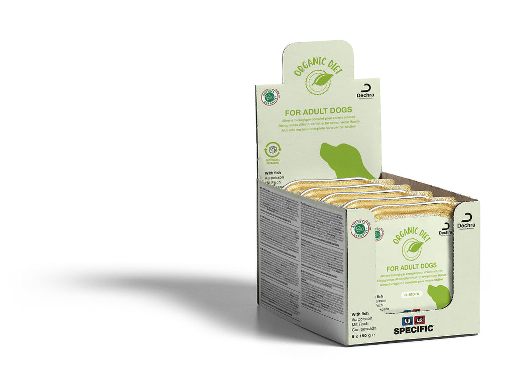 Specific Organic Fish C-BIO-W is een volledige en uitgebalanceerde diervoeding (nat) voor volwassen honden. Ten minste 95% van de voeding is afkomstig van ingrediënten van gecontroleerde biologische herkomst. Deze voeding voorziet in alle voedingsbehoeften van volwassen honden en draagt bij aan hun gezondheid.