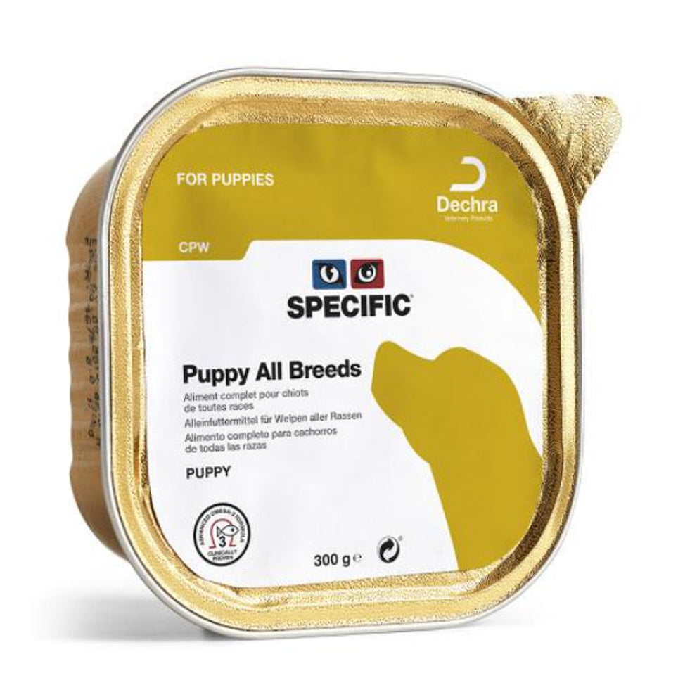 Specific Puppy Alle Breeds CPW is een natvoeding in patévorm voor puppy’s van alle hondenrassen. Het kan gegeven worden als hoofdvoeding maar ook gemengd met brokken of als een smakelijk tussendoortje.