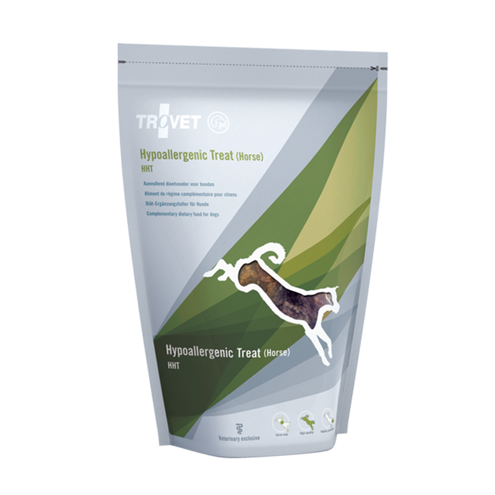 De Trovet Hypoallergenic Treat (Horse) HHT 250 gram bestaat uit 100 % gedroogd paard, zonder toevoegingen en is uitstekend inzetbaar bij honden met een (mogelijke) voedselovergevoeligheid naast een hypoallergeen dieet op basis van dezelfde eiwitbron. De treat kan eveneens worden ingezet voor gezonde volwassen honden.