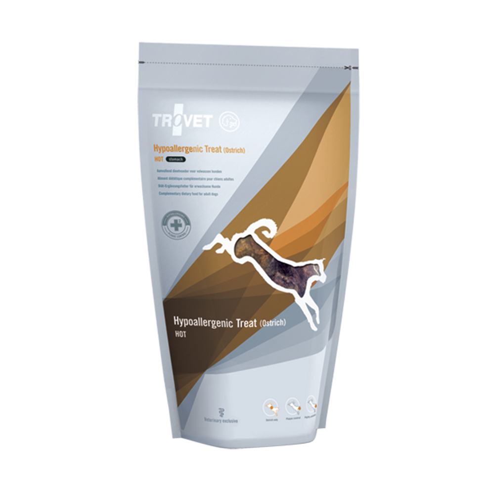 De Trovet Hypoallergenic Treat (Ostrich) Stomach HOT bestaat voor 100% uit gedroogde struisvogel magen, zonder toevoegingen en is uitstekend inzetbaar bij honden met een (mogelijke) voedselovergevoeligheid naast een eliminatie- of hypoallergeen dieet op basis van dezelfde eiwitbron.