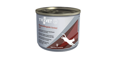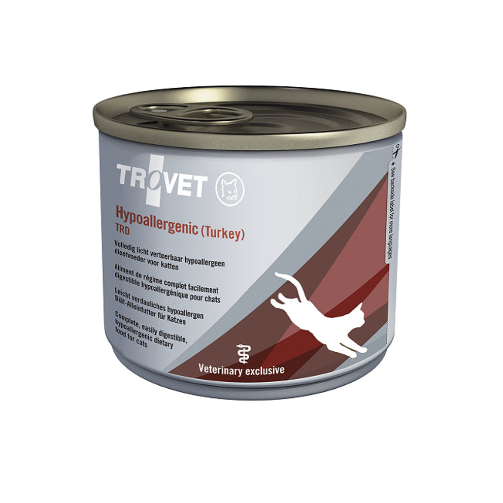 De Trovet Hypoallergenic (Turkey) TRD voeding is een hypoallergeen dieet voor katten dat zo weinig mogelijk ingrediënten bevat, zodat de kans op een allergische reactie wordt geminimaliseerd. Alle Trovet hypoallergene diëten zijn gebaseerd op één (dierlijke) eiwitbron en één koolhydraatbron en bevatten alle essentiële voedingsstoffen in de optimale hoeveelheden. Het toevoegen van een vitaminen- en mineralenmix is dan ook niet nodig. Alle varianten Trovet hypoallergene dieetvoeding kunnen levenslang worden gegeven.