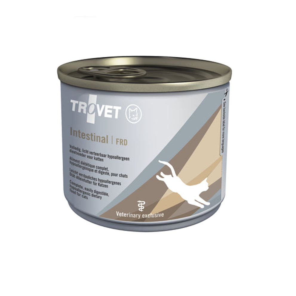 De Trovet Intestinal FRD voeding is speciaal samengestelde, complete hypoallergene dieetvoeding voor katten ter ondersteuning van het maagdarmstelsel. Deze natvoeding bevat zalm als enige dierlijke eiwitbron. De koolhydraatbron van deze dieetvoeding is rijst. Door de toevoeging van zowel fermenteerbare als niet-fermenteerbare vezels, wordt extra aandacht geschonken aan de verteerbaarheid van de voeding en aan gezonde darmen.