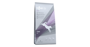 De Trovet Puppy CPF is een volledige diervoeding voor pups van alle rassen. De voeding die u uw pup het eerste levensjaar geeft, is bepalend voor de ontwikkeling tot een volwassen hond. De groei van het jonge dier gaat zeer snel, ook dat van het maagdarmstelsel. Daarom heeft de pup speciale, licht verteer bare voeding nodig die voldoende eiwit en energie bevat. Onderzoek heeft aangetoond dat de voedingsbehoefte van de pup gedurende de gehele groeifase nagenoeg gelijk blijft. Dit betekent dat u de pup gedurende de gehele groeifase Puppy kunt geven. Het streefgewicht van het volwassen dier bepaalt in zekere mate de duur van de groeifase.