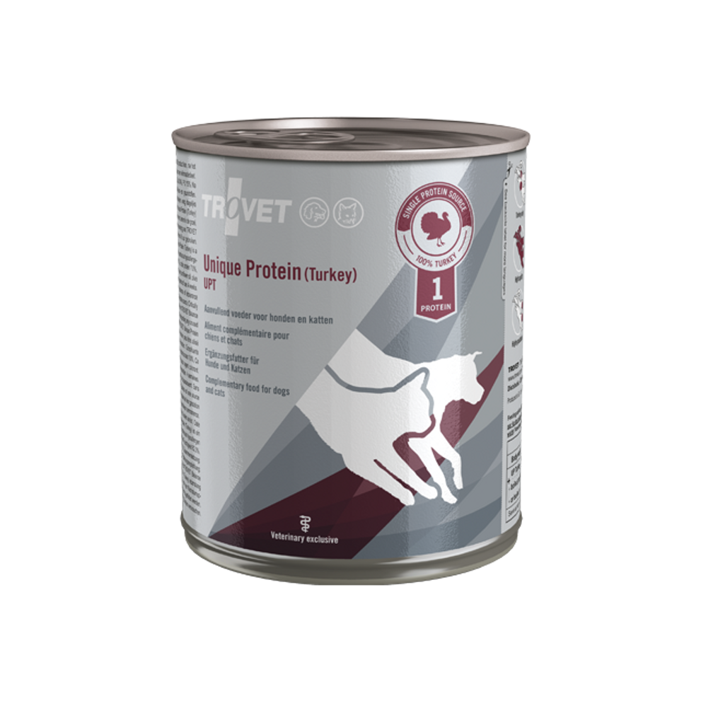 De Trovet Unique Protein voedingen zijn in te zetten bij dieren met een voedingsallergie of -overgevoeligheid. Ze bevatten 100 % vlees van een dierlijke eiwitbron en zijn bedoelt voor het zelf bereiden van een eliminatiedieet voor uw hond of kat. Meestal zijn de bijzondere dierlijke eiwitten die de dierenarts voorschrijft moeilijk verkrijgbaar en is afwegen en bereiden van de voeding een tijdrovende bezigheid. Daarnaast verspreiden sommige vleessoorten een onaangename geur tijdens de bereiding. Om een eliminatiedieet samen te stellen hoeft u alleen een koolhydraatbron te koken en de Trovet Unique Protein toe te voegen. De voorkeur gaat uit naar witte rijst of aardappel.