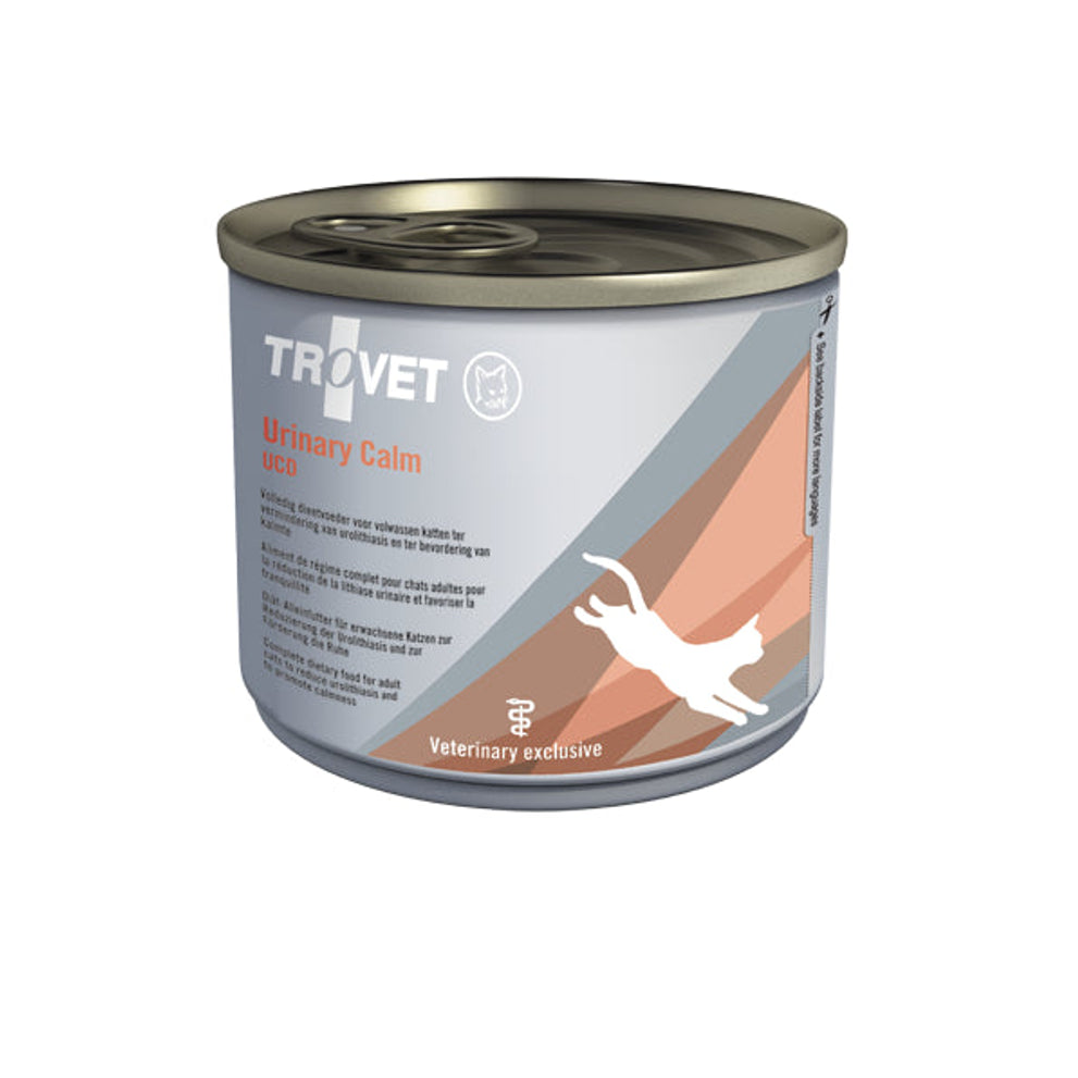Trovet Urinary Calm UCD is een speciaal samengestelde, complete dieetvoeding ter preventie van blaas- en nierstenen ten gevolge van stress. Om stress te helpen verminderen, zijn aan Urinary Calm drie stoffen toegevoegd: groene thee extract, melkeiwit hydrolisaat en tryptofaan. Urinevolume heeft het grootste effect op de vorming van alle blaas- en nierkristallen, waar bij een groot urinevolume de kans op kristalvorming verkleint. Voor de vergroting van het urinevolume is het natriumgehalte licht verhoogd in deze voeding.