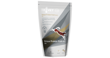 De Trovet Unique Protein Treat (Duck) bevat één eiwitbron en rijstzetmeel als enkele koolhydraatbron en deze licht verteerbare treat is hierdoor inzetbaar voor honden met een (mogelijke) voedselovergevoeligheid naast een hypoallergeen dieet op basis van dezelfde eiwitbron. Deze snack kan eveneens worden ingezet voor gezonde volwassen honden.