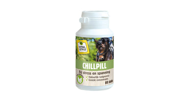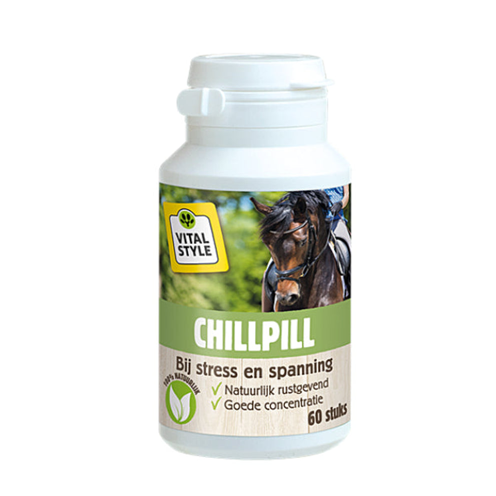 De ChillPill van VitaStule is een 100% natuurlijk en dopingvrij voedingssupplement voor paarden dat ingezet kan worden in situaties van stress zoals wedstrijden, training, transport of verandering van omgeving. Het bevat een combinatie van natuurlijke ingrediënten goed voor innerlijke rust en het concentratievermogen.